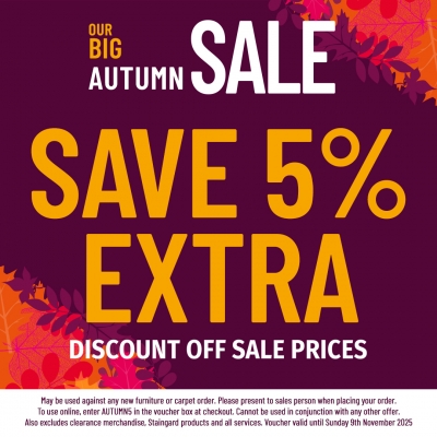 SAVE an EXTRA 5% OFF our Autumn Sale prices with the below voucher.